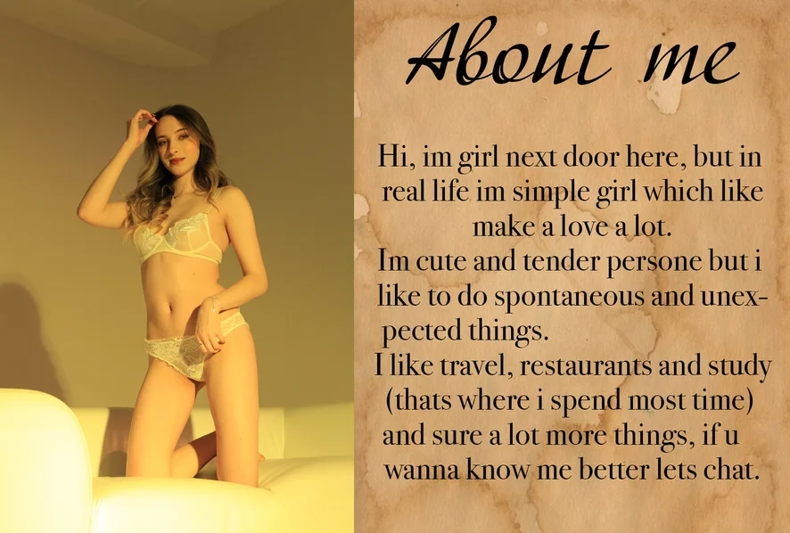 Ахеґао, Мінет, Дилдо або вібратор, Брудні розмови, Догі-стайл, Еротичні танці, Мастурбація пальцями, Мастурбація рукою, Мастурбація, Іграшки для сосків, Олійне шоу, Секс-іграшки, Страпон, Стр иптиз, Топлес, Жорсткий секс, Оргазм, Душ, Спанкінг, Задерта спідниця, Тверкінг, Поза вершниці, Масаж, Йога, Оцінювання прутня, На кухні, Демонстрація геніталій, Фут-фетиш, Підбори, Інструкція з мастурбування, Поцілунки, Доміна, Нейлон, Рольові ігри, Паління, Між грудьми, Анал, Анальні іграшки